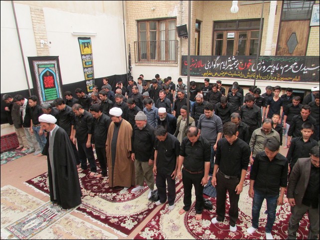 در این مراسم معنوی عزاداران با نوحه سرایی، سینه زنی و روضهخوانی شهادت سید و سالار شهیدان حضرت اباعبدالله الحسین(علیه السلام) و یاران با وفایش را در حضور مرجع عالیقدر به سوگ نشسته و به یاد نماز ظهرعاشورای امام حسین (ع) و یارانش، نماز ظهر و عصر را به امامت حضرت آیت الله العظمی موحدی نجفی(مدظله العالی) اقامه نمودند.